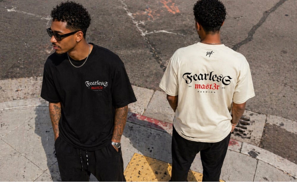 Crafted from premium-quality cotton, the tee delivers a soft, structured feel that holds its shape while remaining breathable for all-day wear. The front features a clean, minimal left-chest badge for a refined touch, while the back commands attention with the full “Fearless mast3r” graphic — a powerful visual that represents ambition, discipline, and elevated mindset.